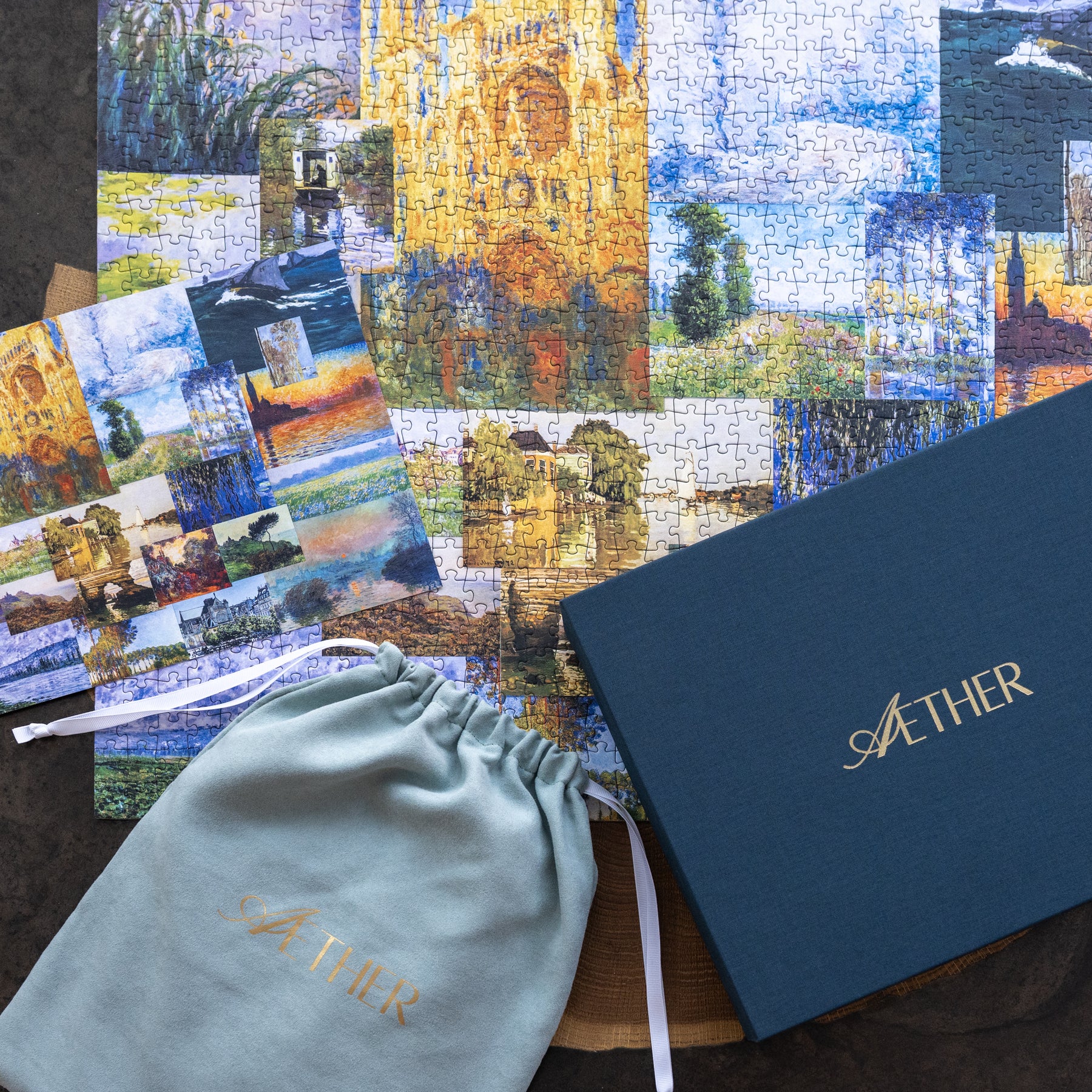 Explore the luminous beauty of Aether’s collection, Impressions of Light, part of an exclusive three-puzzle series celebrating the masterpieces of Claude Monet. This puzzle combines Monet’s iconic scenes, from tranquil water lilies and vibrant gardens to serene seascapes and picturesque landscapes. Crafted with exquisite attention to detail, each puzzle piece captures the ethereal light and delicate brushstrokes that define Monet’s Impressionist genius. A perfect addition to your collection, this puzzle offers a sophisticated and immersive experience, evoking the timeless elegance of one of the world’s most celebrated painters.