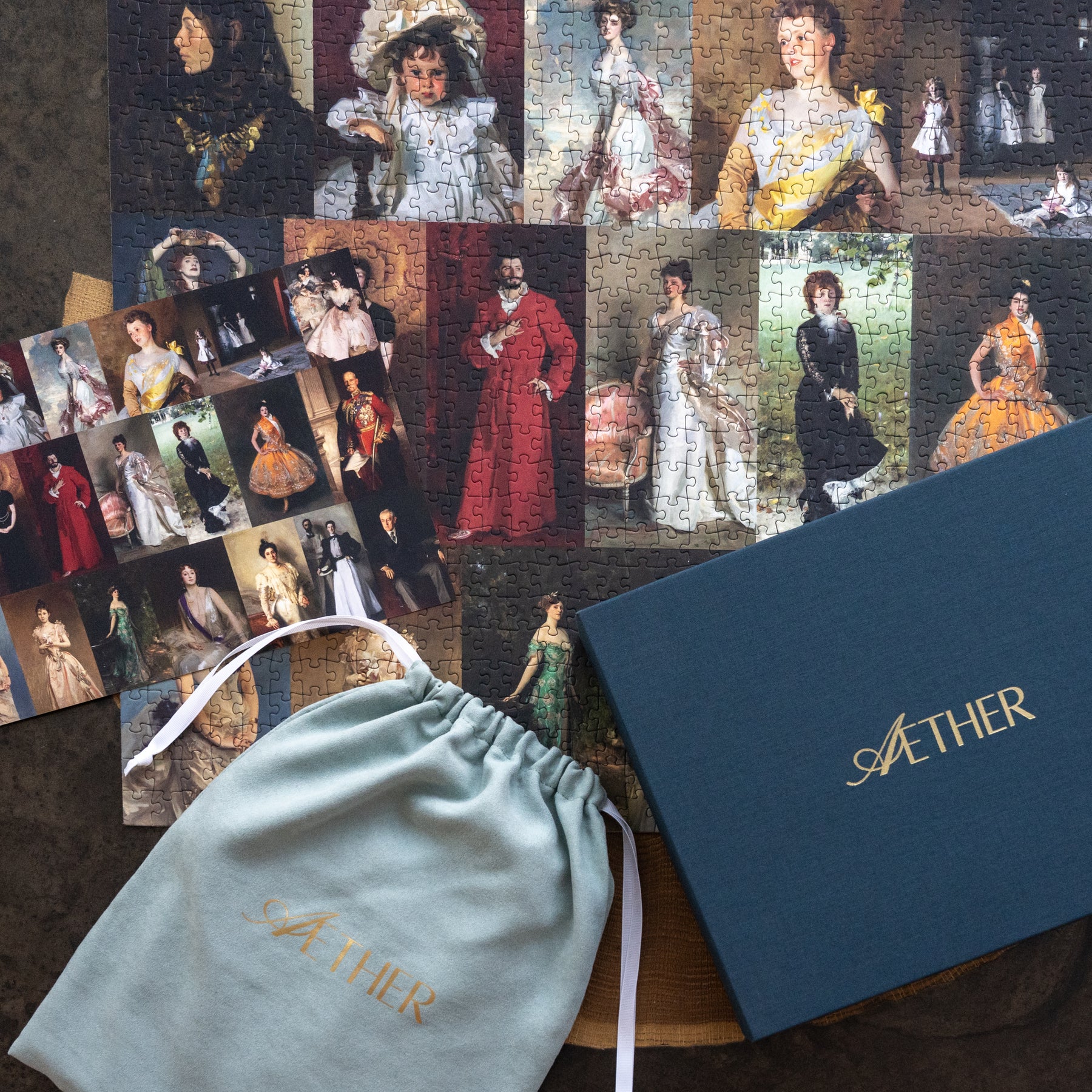 When creating this puzzle, I wanted to focus on the elements that drew me in from the very beginning: color and mood. I curated a selection of his portraits that reflect both the breadth of his talent and the beauty of his palette; soft fabrics, glinting eyes, warm light.
