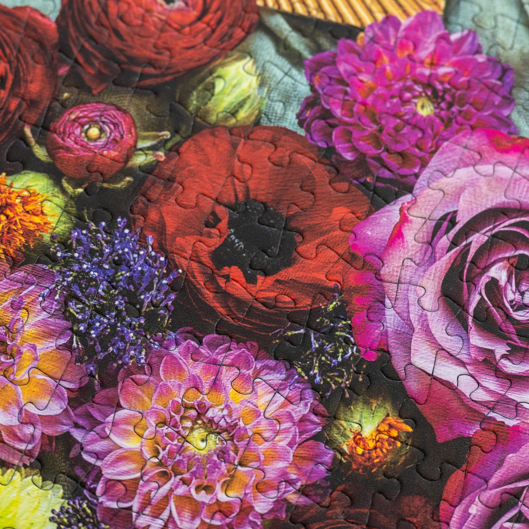 This series brings the garden to life in a uniquely artistic way. Celebrating nature's vibrant beauty, crafted from real flowers meticulously arranged, photographed, and transformed into captivating works of art, each puzzle in the series bursts with a symphony of colors and textures.