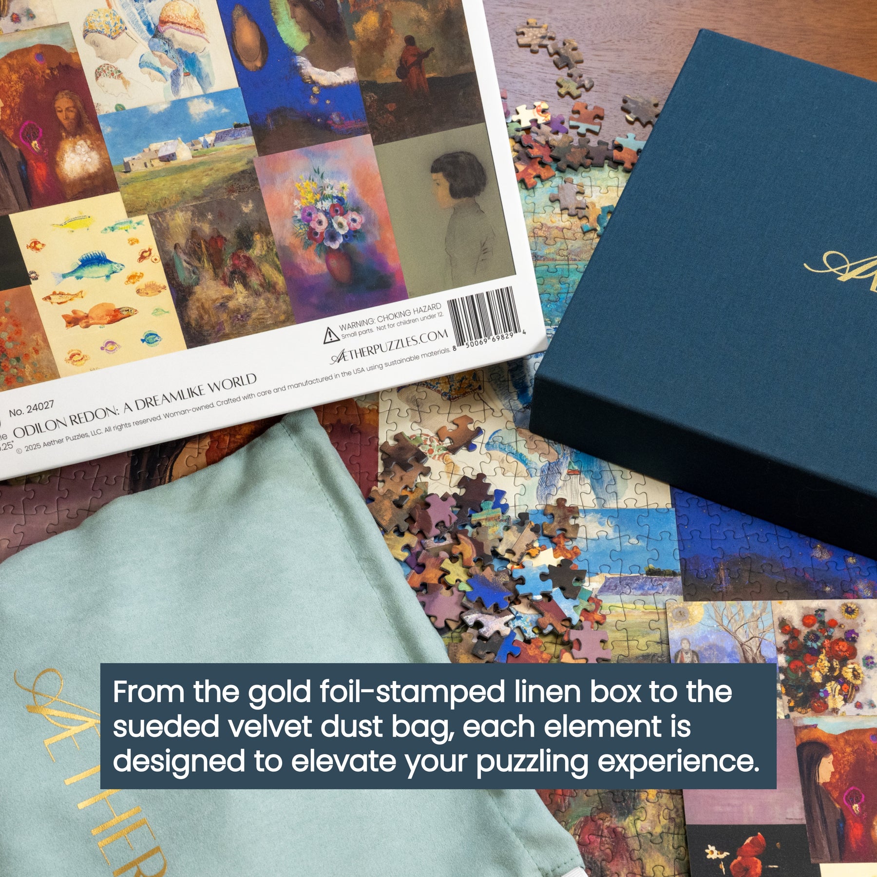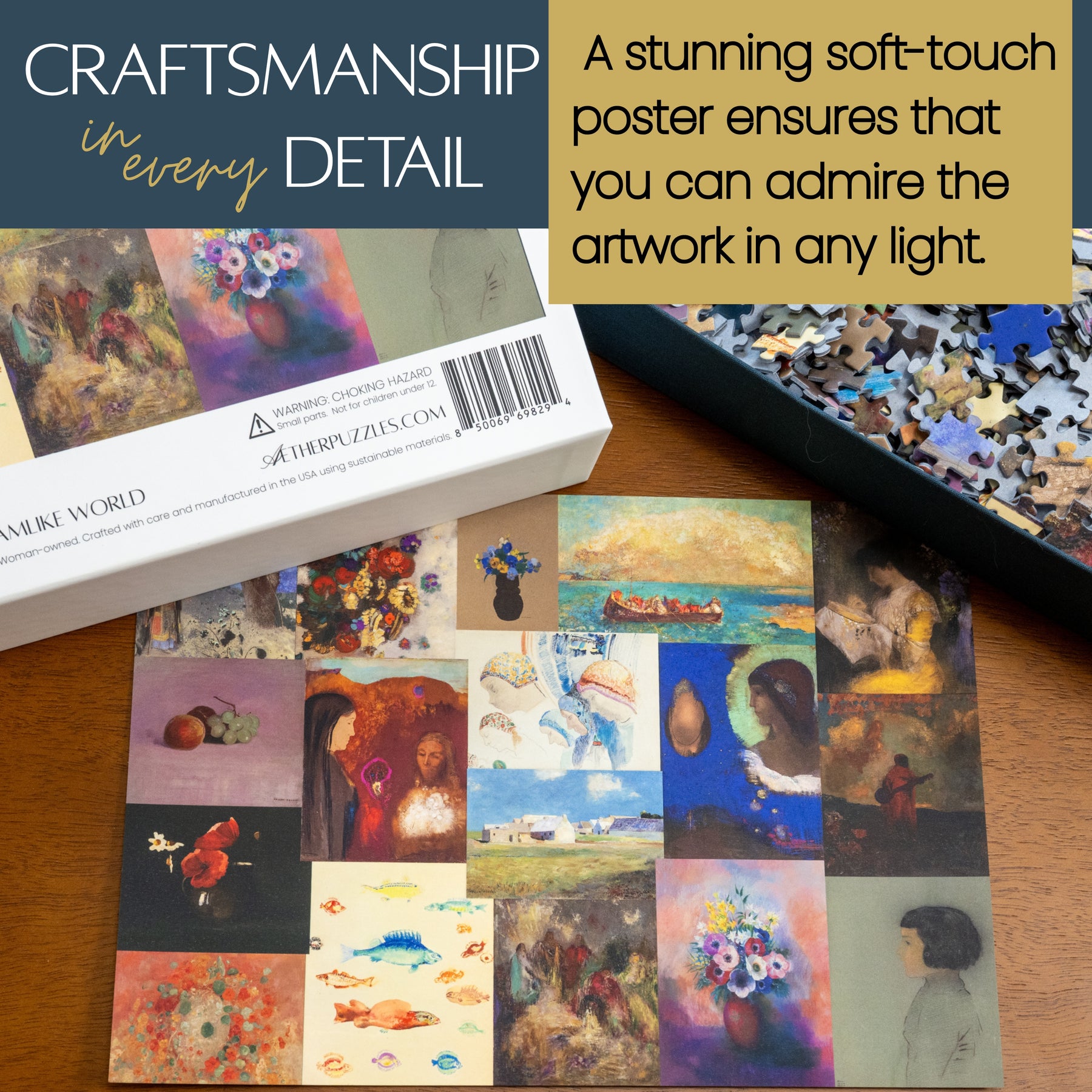 This puzzle celebrates the visionary artistry of Odilon Redon, a master of French Symbolism. Featuring his ethereal landscapes, mythical creatures, and dreamlike portraits, the puzzle immerses you in Redon’s world of fantasy and the unknown. His luminous colors and otherworldly subjects evoke a sense of mystery and wonder, inviting you to explore the depths of imagination and symbolism that define his iconic works.